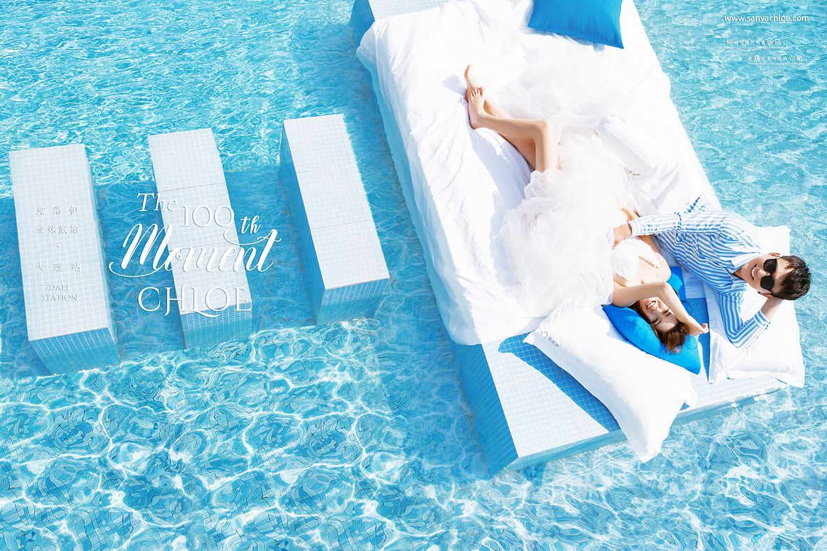 洱海边上的网红泳池,悬空而立在洱海上空,与洱海连成一条海平线。宽阔的洱海为背景,克洛伊美学团队该如何呈现泳池梦幻感的婚纱照呢?往下看你就知道了。